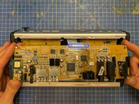 With the P16-M face down on the table, ease the circuit board away from the back plate to free the connectors from their slots, then manoeuvre it out of the case.