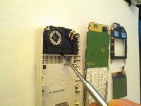 Turn the device face down and press on the small button at the bottom . Slide the back case down.