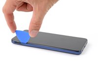 Position the opening pick at a steep downward angle between the back cover and the screen assembly.