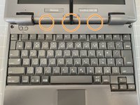 Remove 3 x silver 3mm phillips screws from the top of the keyboard.