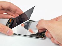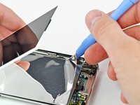 "Gently insert an iPod opening tool between the glass front panel and its plastic surround near the headphone jack."