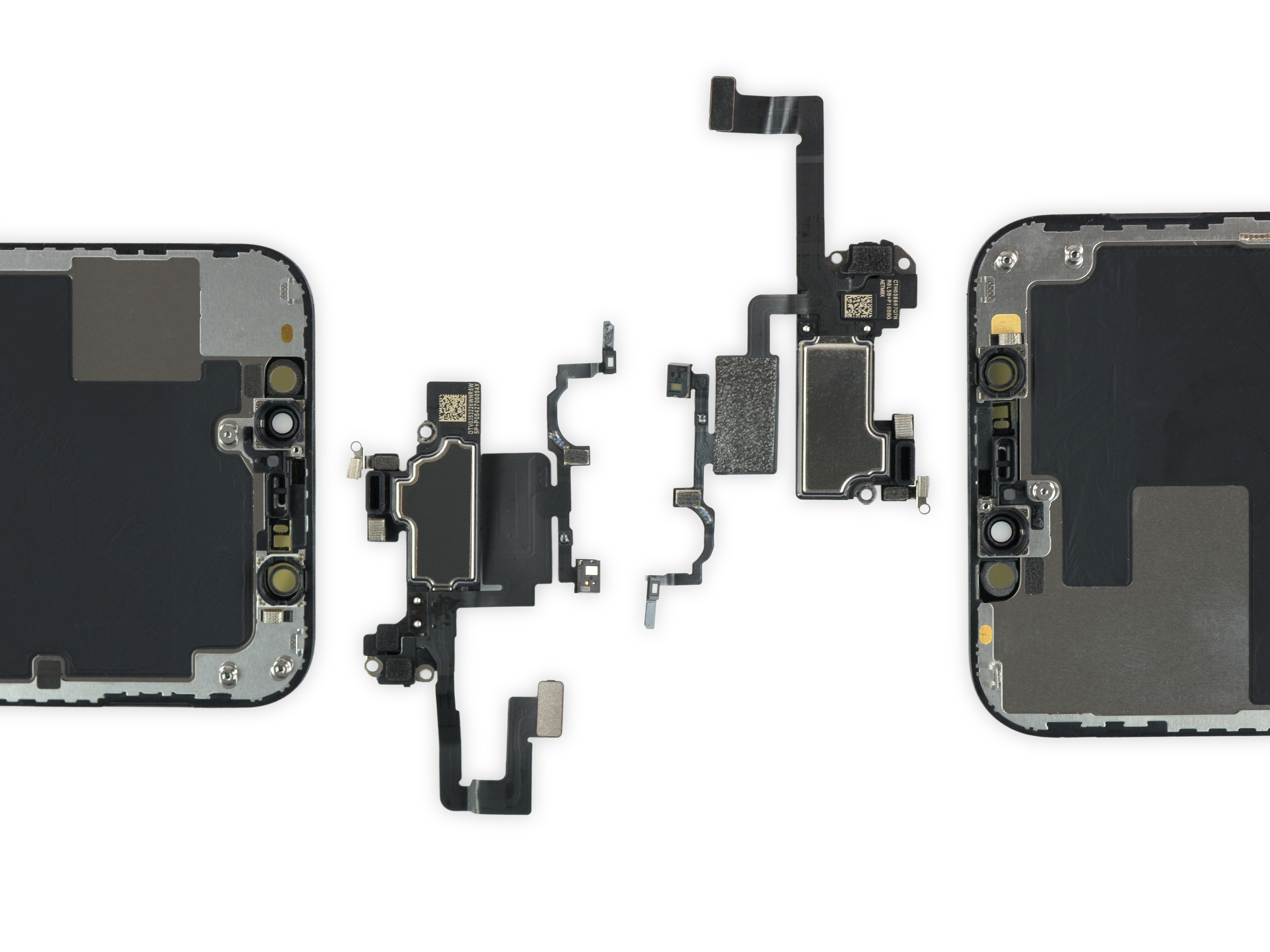 Il gruppo sensori della parte superiore, che contiene altoparlante, Face ID e i sensori ha a sua volta subito delle modifiche per adattarsi a una casa leggermente più piccola.